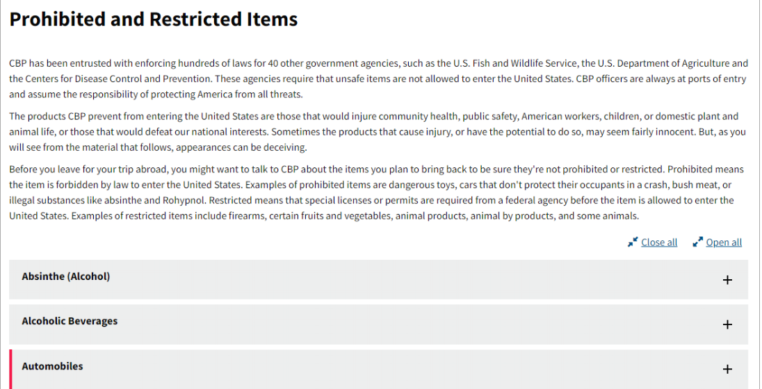 CBP provides a comprehensive list of restricted and prohibited items on their website, and vehicles are specifically included in this list. Due to their classification as restricted items, vehicles are not eligible for informal entry procedures. This means that when importing a vehicle into the United States, you must go through the more detailed and regulated formal entry process regardless of its value.